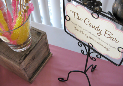 We included an empty bag at each place setting with a note that matched the design of our invites telling people to help themselves to some sweet treats at The Candy Bar.